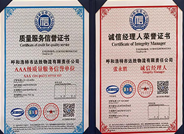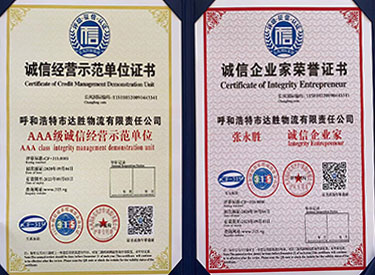 2007年榮獲內(nèi)蒙古物流行業(yè)誠信企業(yè)