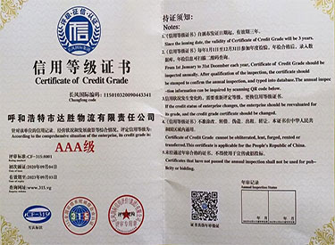 2020年9月獲得AAA級(jí)信用等級(jí)證書